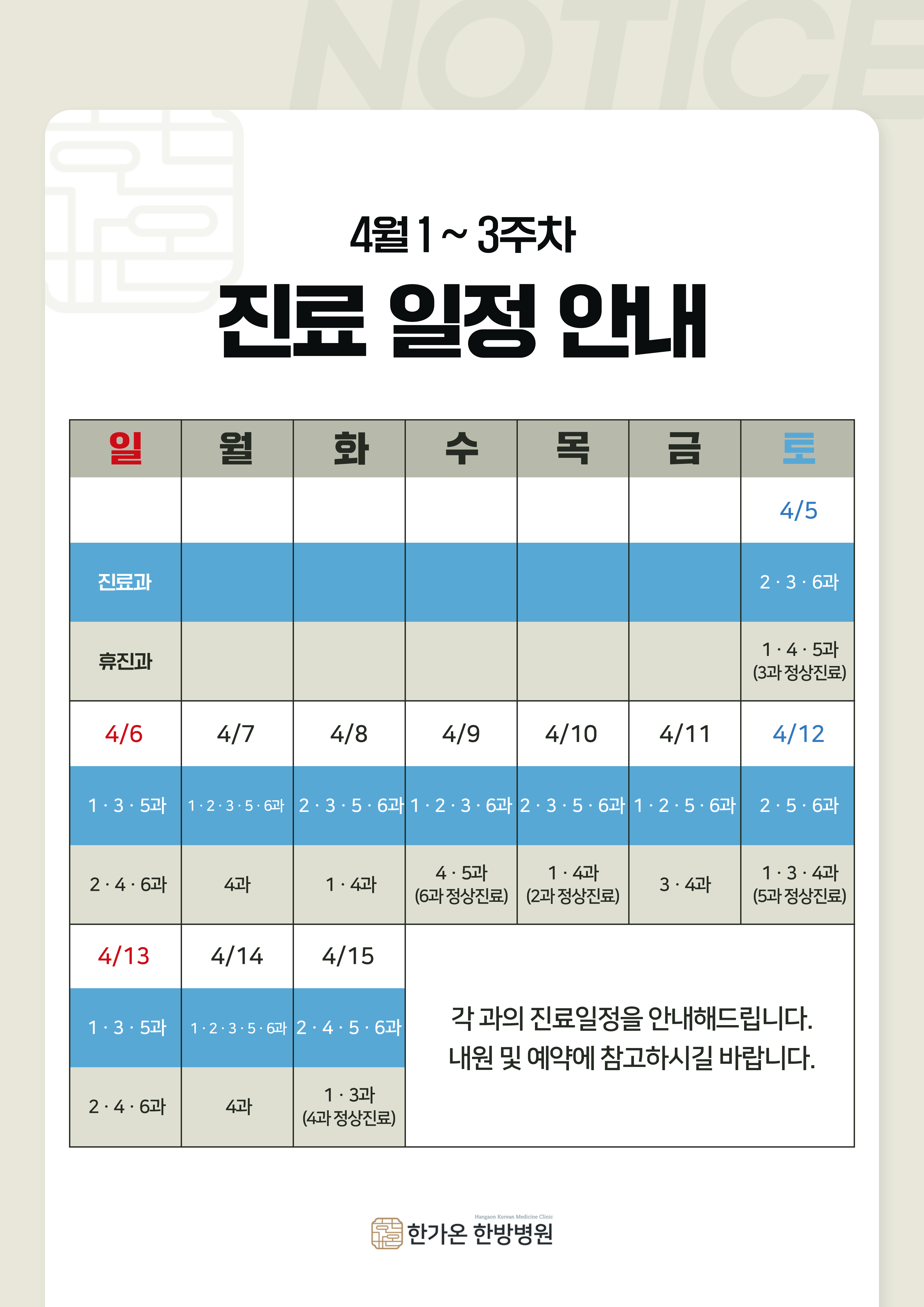 4월 1~3주차 진료 일정 안내