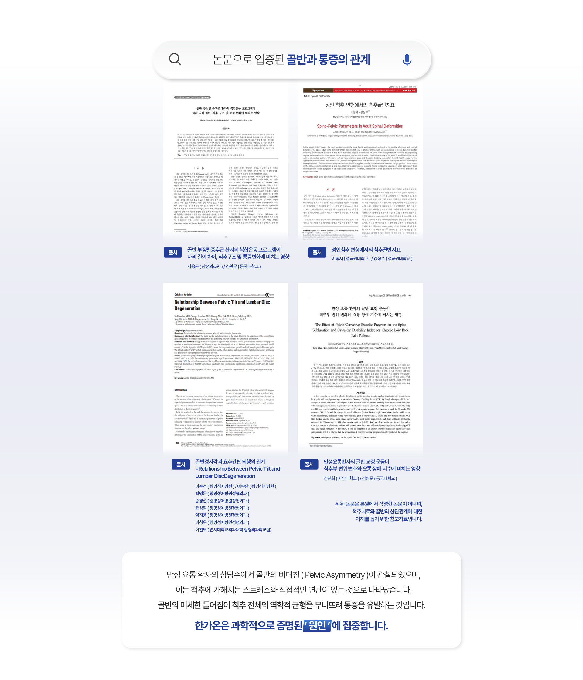 골반은 척추를 잡아주는 기둥이고 체중을 다리에 전달하는 중심입니다. 골반의 문제는 신체 불균형을 가져오고 관절에도 영향을 줍니다. 한가온은 신체 밸런스를 교정하고 원인과 통증을 잡는 치료법을 제시합니다.